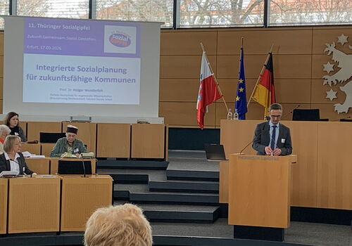 Erfurt. Prof. Dr. Holger Wunderlich, Professor für Sozialraumorientierung und Sozialarbeitsforschung an der Ostfalia Hochschule für angewandte Wissenschaften, setzte mit seinem Vortrag „Integrierte Sozialplanung für zukunftsfähige Kommunen: sozialraumorientiert, partizipativ und kooperativ“ zu Beginn der Veranstaltung wichtige Impulse.